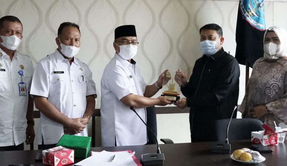 MERANGIN - Ketua bersama dua orang wakil ketua dan sembilan orang anggota DPRD Kota Payokumbuh Sumatera Barat, melakukan kunjungan kerja (Kunker) dan silaturahmi ke Pemerintah Kabupaten Merangin, Rabu (07/7/2021). Badan musyawarah Dewan Payokumbuh yang dipimpin Ketua DPRD Kota Payokumbuh Hamdi Agus tersebut, diterima Pj Sekda Merangin Muktamar Hamdi bersama Asisten I H Abd Gani dan staf ahli bupati Dedy Darmantias di ruang rapat kerja bupati Merangin. ‘’Hari ini kita menerima kunjungan kerja dari tetangga kita rombongan DPRD Kota Payokumbuh. Dari pembicaraan yang telah kita lakukan ada sinergi yang terjadi dan saling tukar informasi terkait pembangunan daerah,’’ujar Pj Sekda Merangin. Sementara itu Ketua DPRD Kota Payokumbuh Hamdi Agus mengatakan, kunjugan kerja yang dilakukan ke Sekretariat Pemkab Merangin, dalam rangka pertukaran informasi berkaitan dengan singkronisasi kegiatan-kegiatan DPRD Kota Payokumbuh. ‘’Dari kunjungan kerja ke Pemkab Merangin ini, ada sesuatu yang bisa kami bawa ke Payokumbuh dan terjalin kemitraan yang baik,’’ujar Hamdi Agus didampingi dua orang wakil ketua DPRD Kota Payokumbuh Wulan Denura dan Armen Faidal. DPRD Kota Payokumbuh lanjut Hamdi Agus, sudah lama ingin menjalin kemitraan dengan Pemkab Merangin, sehingga dalam membangun daerah akan saling mengisi satu sama lainnya.Penulis: Doni Sobri