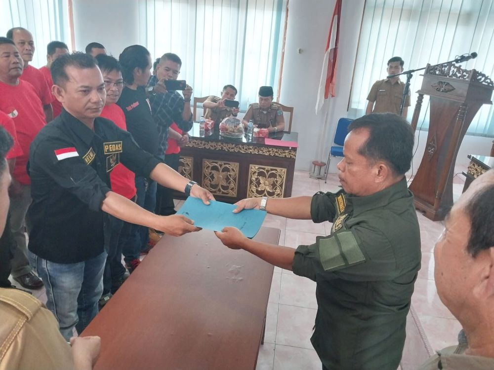 MERANGIN - Pengukuhan Ketua dan Wakil Ketua serta pengurus Organisasi Kemasyarakatan (Ormas) Peduli Daerah Sendiri (PEDAS) untuk masa 2022-2025, berlangsung hari Senen (12/12/22). Pengukuhan ditandai dengan prosesi penyerahaan Pataka Ormas PEDAS oleh Pendiri Pedas Hendra Ledi diwakili oleh Nurdin Rolex kepada ketua terpilih Helmi. Dan penyerahan pakta integritas yang nsudah dibaca seluruh pengurus kepada penasehat Pedas Doni Sobri. Nurdin Rolex berharap Ketua PEDAS yang telah resmi dikukuhkan, dapat mengibarkan tujuan berdirinya pedas di bumi Merangin, serta dapat menjaga marwah dan nama baik organisasi. “Kita berharap Ketua Pedas saudara Helmi dapat menjalankan misi dan visi berdirinya organisassi Pedas di Merangin. Segala rintangan pasti akan menghadang, akan tetapi tetap saja saudaraa Helmi wajib mengibarkan bendera organisasi Pedas di Merangin, sesuai AD/ART organisassi yang telah disepakati bersama,“ tegas Nurdin Rolex bersemangat. Sementara itu usai dikukuhkaan, Ketua Peduli Daerah Sendiri (PEDAS) Kabupaten Merangin Helmi mengatakan, bahwa dirinya telah siap mental untuk menjalankan misi dan visi organisasi PEDAS, apapun rintangannya. “Permasalahan dalam menjalankan roda organisasi PEDAS pastilah ada. Namun saya minta semua anggota PEDAS tetap solid dan kompak dalam menjalankan roda organisasi. Jangan lupa satu komando,” ujar Helmi sambil mengepalkan tangan kanan. Pelantikan ormas PEDAS sendiri berlangsung di aula Kantor Kesbangpol Merangin dihadiri Bupati Merangin Mashuri, Dandim 04420/Sarko diwakili Pasi Log Letda Jori Hanadi, Kapolres Merangin diwakil Kasat Intel AKP Malik, SH dan Kajari Merangin juga diwakili. Hadir juga dalam pelantikan yang berlangsung hikmat tersebut sejumlah Kepala OPD, Sejumlah Ketua LSM, Ketua PWI Kabupaten Merangin Nazarman, Ketua Porwam Rafik dan inisiator bedirinya PEDAS di Merangin Khaidir, S.Ag. MH. Bupati Merangin Mashuri dalam pesannya berharap Organisasi Pedas dalam kiprahnya di Merangin dapat membantu tugas kegiatan pemerintahan. ”Kami berharap organisasi Pedas dalam membantu pelaksanaan tugas pemerintahan," harapnya. Terkait banyaknya papan nama atau karangan bunga yang dikirim oleh berbagai pihak, Wakil Ketua PEDAS Merangin Basaruddin mengatakan bahwa keberadaan Pedas dapat diterima masyarakat Merangin. “Banyaknya ucapan selamat dari berbagi pihak membuktikan keberadaan PEDAS di Merangin dapat diterima amsyarakat," tandas Basyaruddin.