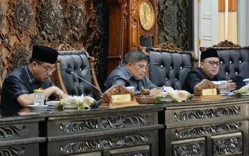 MERANGIN - Pj Bupati Merangin, H. Mukti menyampaikan rancangan peraturan daerah (Ranperda) 2023 pada rapat peripurna DPRD Merangin, di Aula Utama Gedung Dewan Merangin, Selasa malam (10/10/23). Ada sebanyak dua Ranperda yang disampaikan Pj Bupati pada rapat paripurna yang dihadiri para kepala Organisasi Perangat Daerah (OPD) di jajaran Pemkab Merangin tersebut. Ke dua Ranperda itu, pertama Ranperda tentang Pajak Daerah dan Retribusi Daerah, kedua Ranperda tentang Rencana Tata Ruang Wilayah Kabupaten Merangin tahun 2023 -2043. ‘’Kami sangat berharap kedua Ramperda tersebut, dapat dibahas dan mendapatkan persetujuan bersama antara DPRD dan Pemerintah Daerah Kabupaten Merangin,’’ujar Pj Bupati Merangin. Diakui Pj Bupati, dalam pembentukan peraturan daerah (Perda) tidak mudah, terutama harus dihindari jangan sampai terjadi duplikasi aturan, baik secara horizontal maupun vertical. Untuk itu perlu dilakukan harmonisasi singkronisasi, agar Perda yang telah terbentuk dan disepakati nantinya dapat dilaksanakan dan ditegakan oleh Satuan Polisi Pamong Praja. ‘’Kedua Ranperda yang kami sampaikan pada rapat paripurna DPRD Merangin tersebut, telah disusun dengan seteliti mungkin, disertai naskah akademik atau penjelasan kedua Ranperda tersebut,’’ terang H Mukti. Rapat paripurna DPRD Merangin itu, dipimpin Ketua DPRD Merangin Herman Effendi, didampingi wakil ketua DPRD Merangin Ahmad Kausari dan H Zaidan Ismail dan dikuti para anggota Dewan Merangin.