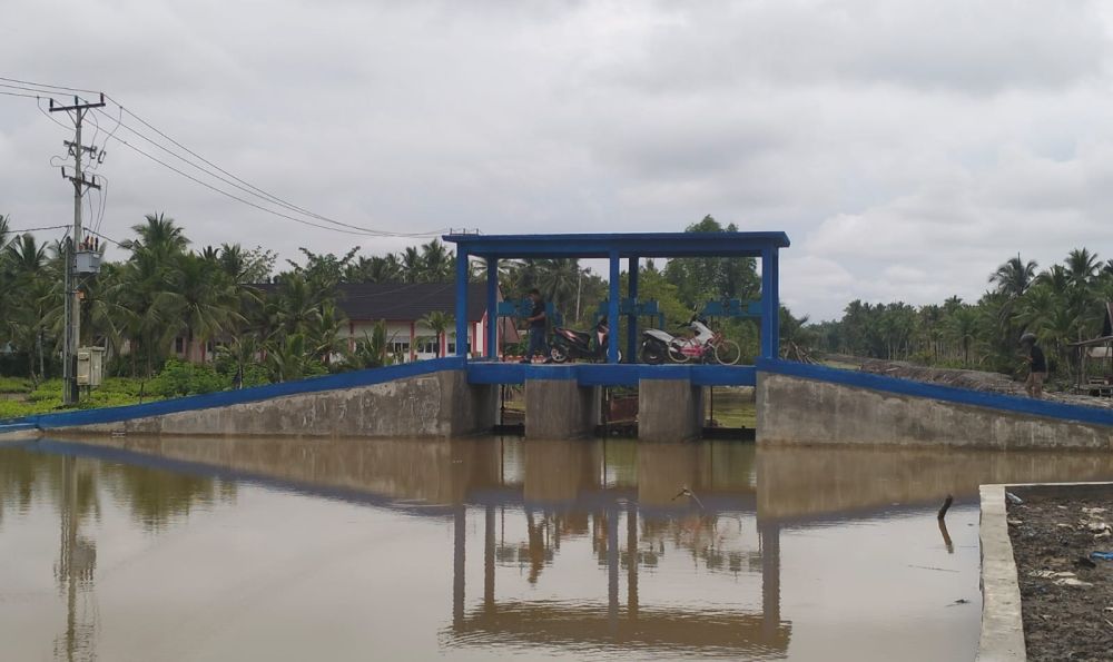 TANJAB BARAT - Proyek pembangunan pintu air di Parit 10 Desa Tungkal 1, Kecamatan Tungkal Ilir, Kabupaten Tanjung Jabung Barat (Tanjab Barat) yang dibiayai anggaran tahun 2025 senilai lebih dari Rp4 miliar menjadi temuan dari Badan Pengawasan Keuangan dan Pembangunan (BPKP) sebesar Rp781.636.546,27 belum lunas dikembalikan oleh kontraktor ke Kas Negara Daerah (Kasda).